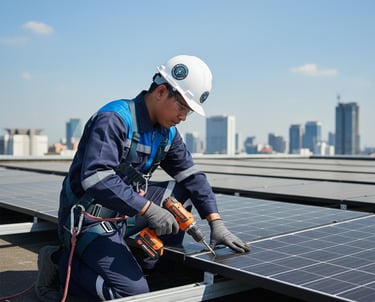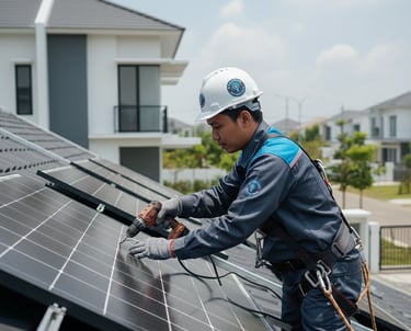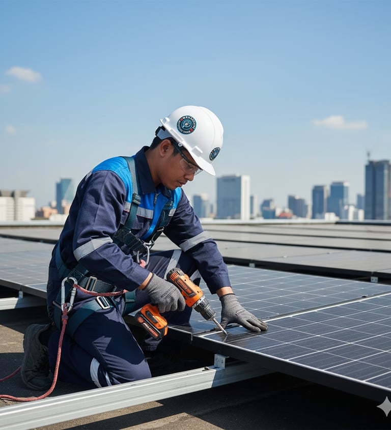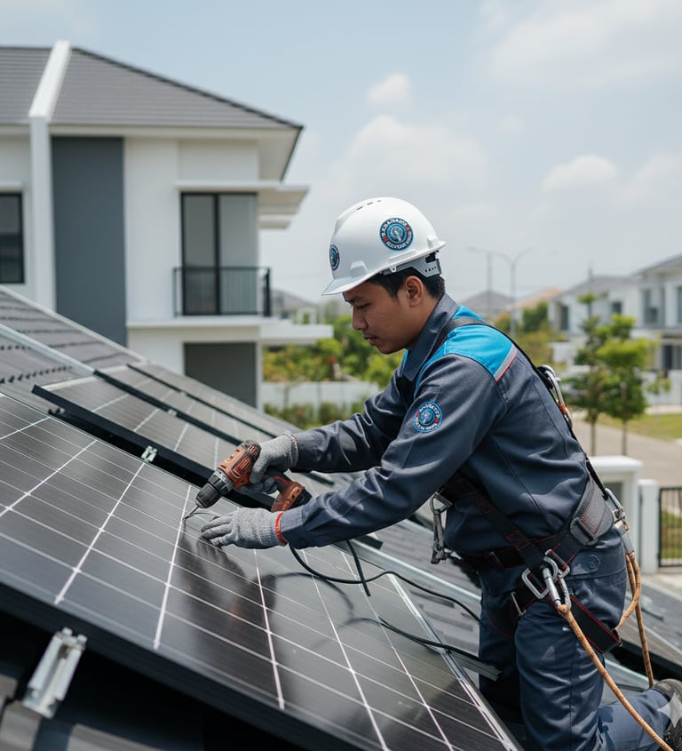 Solusi terintegrasi untuk Pembangkit Listrik Tenaga Surya (PLTS) di rumah Anda. Kami menawarkan layanan lengkap mulai dari penjualan komponen berkualitas (panel surya dan inverter bersertifikat) hingga instalasi sistem On-Grid dan Off-Grid yang aman dan efisien. Tim teknisi elektrikal kami adalah tenaga ahli Indonesia yang bersertifikat, menjamin desain yang optimal, pemasangan yang rapi, dan membantu pengurusan administrasi (termasuk izin PLN) agar Anda dapat segera menikmati listrik gratis dari matahari.